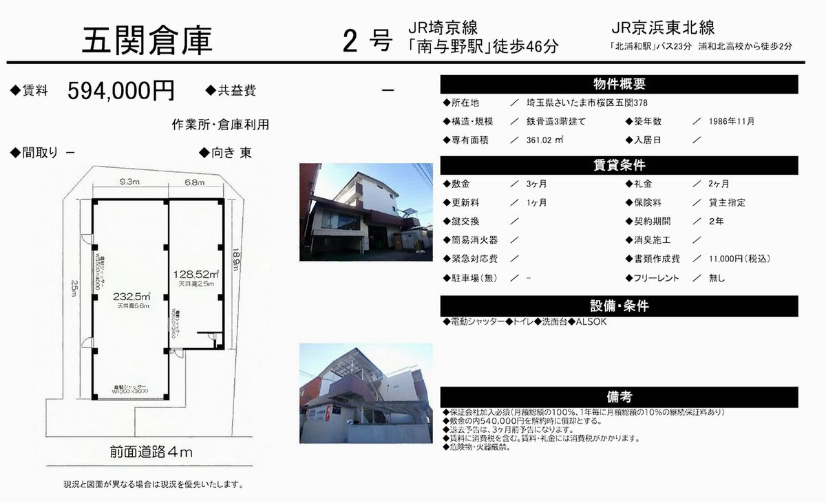 さいたま市桜区大字五関378 五関倉庫2号 詳細データ