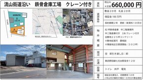 | 備考 | 2.8tクレーン付 トイレ 中2階有 |
