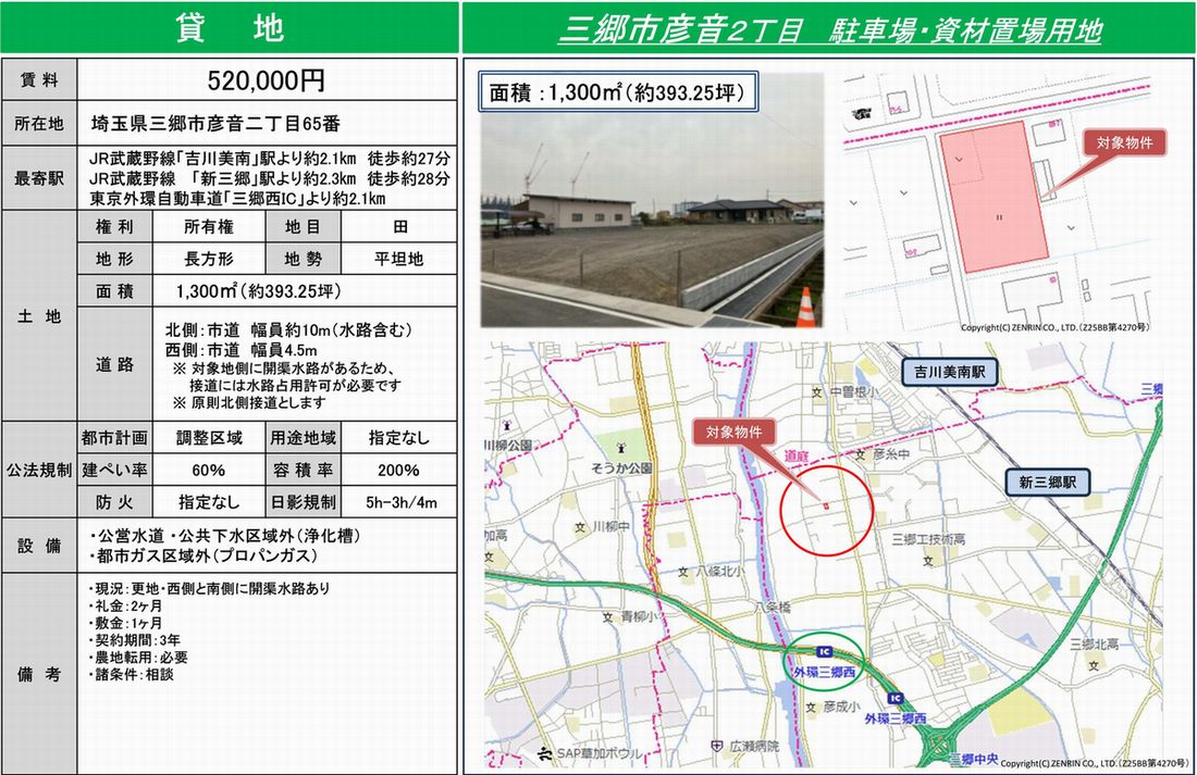 三郷市彦音2-65 新三郷 貸地 詳細データ