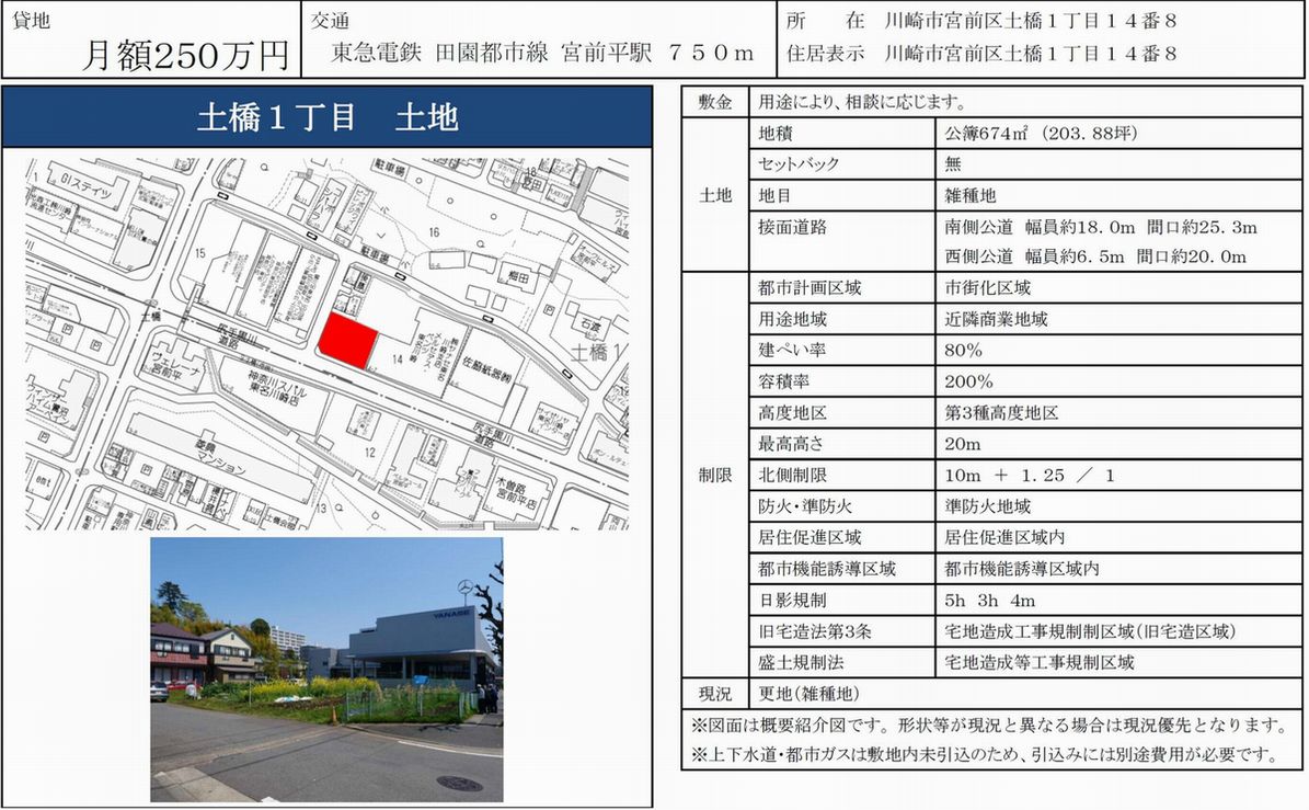 川崎市宮前区土橋1-14-8 宮前平 貸地 詳細データ