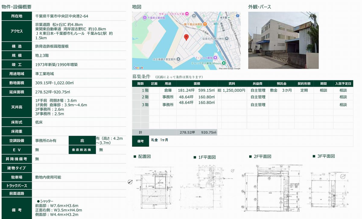 千葉市中央区千葉港2-64 千葉みなと 貸倉庫 詳細データ