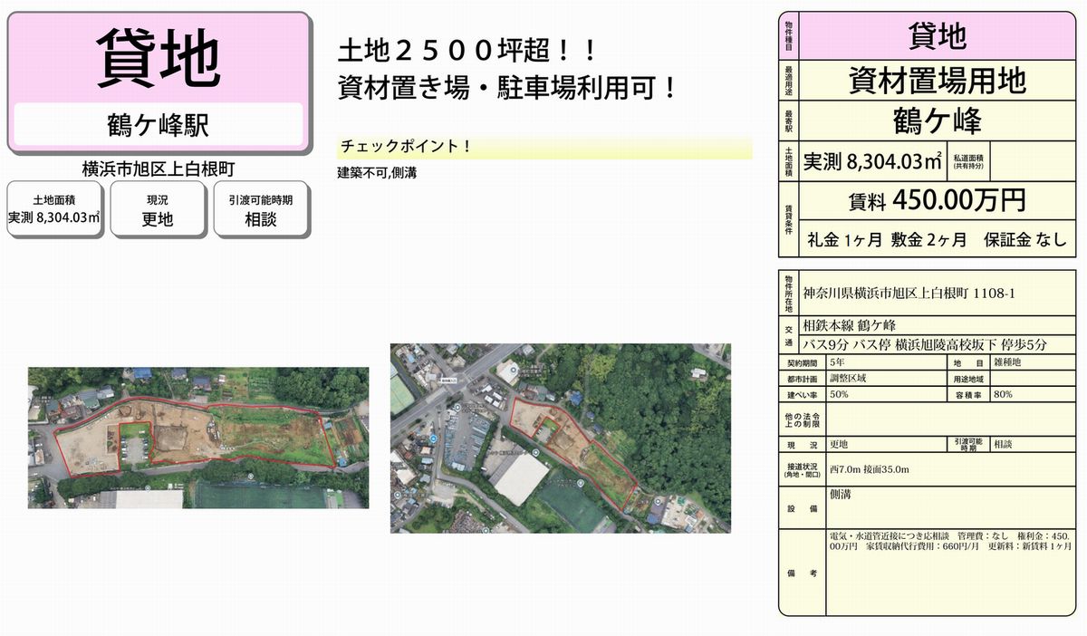 横浜市旭区上白根町1108-1 鶴ヶ峰 貸地 詳細データ