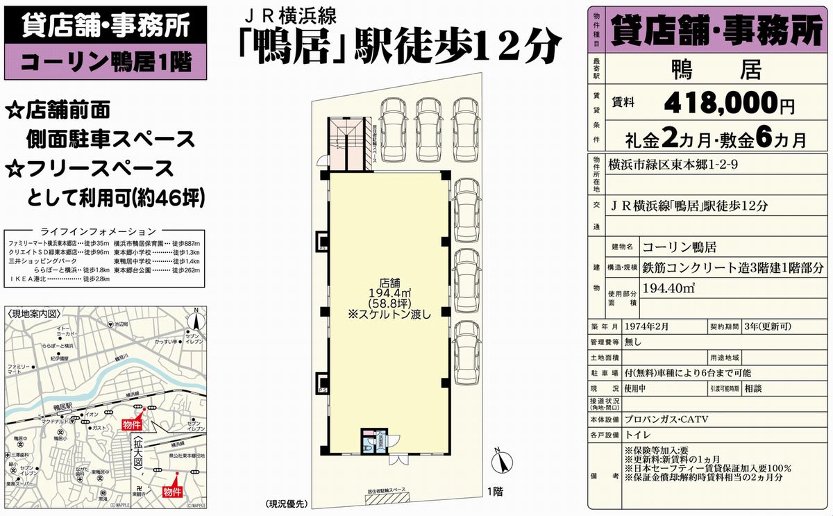 | 沿線/駅 | JR横浜線 / 鴨居 |