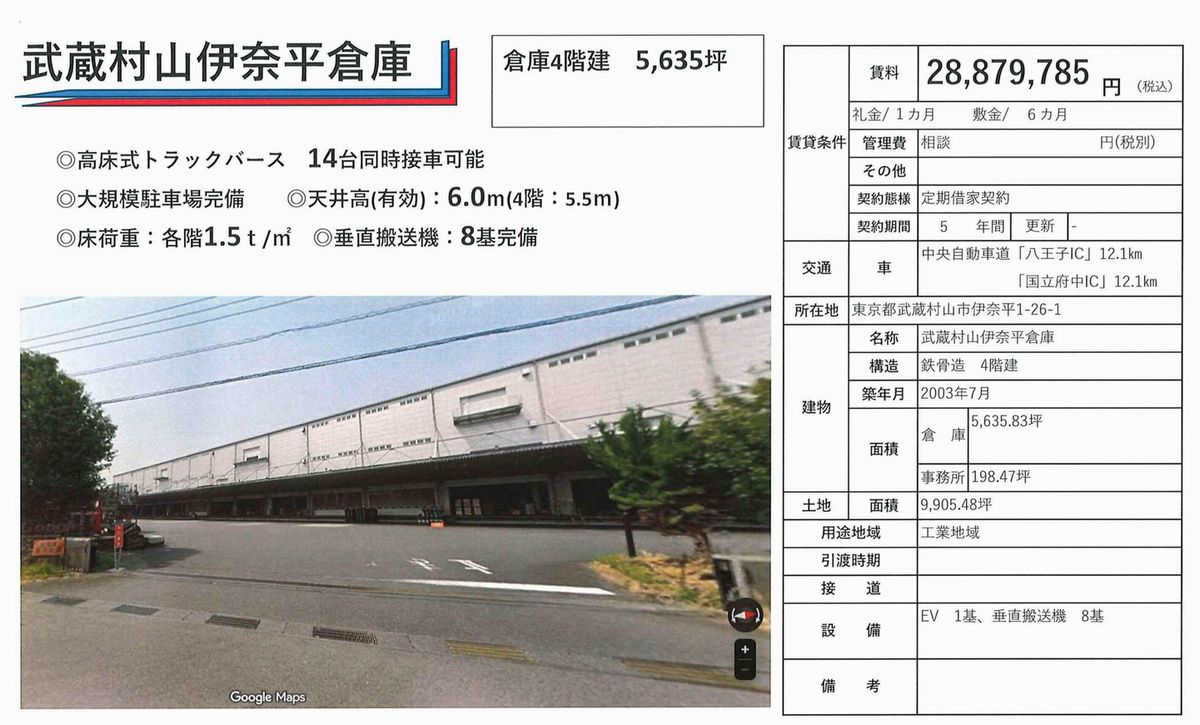 武蔵村山市伊奈平1-26 武蔵砂川 貸倉庫 詳細データ