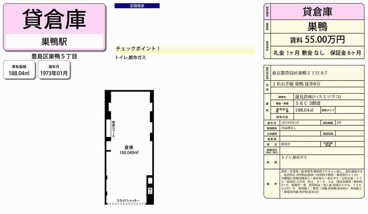 豊島区巣鴨5-9-7 蓮見倉庫 詳細データ
