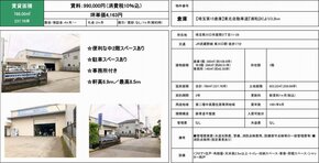 | 備考 | 天井高5M以上 駐車スペース有 トイレ シャッター 事務所付 |