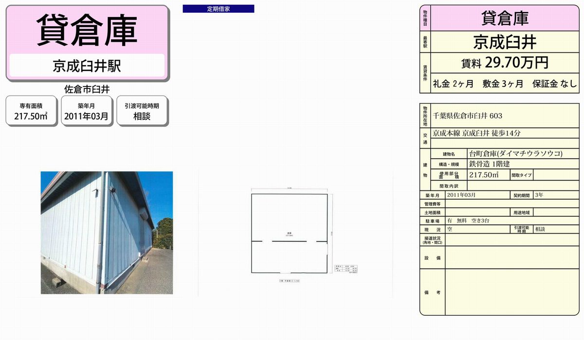 佐倉市臼井603 台町倉庫 詳細データ