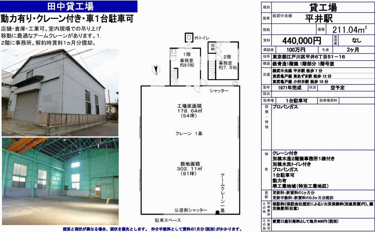 江戸川区平井6-51-16 田中貸工場 詳細データ