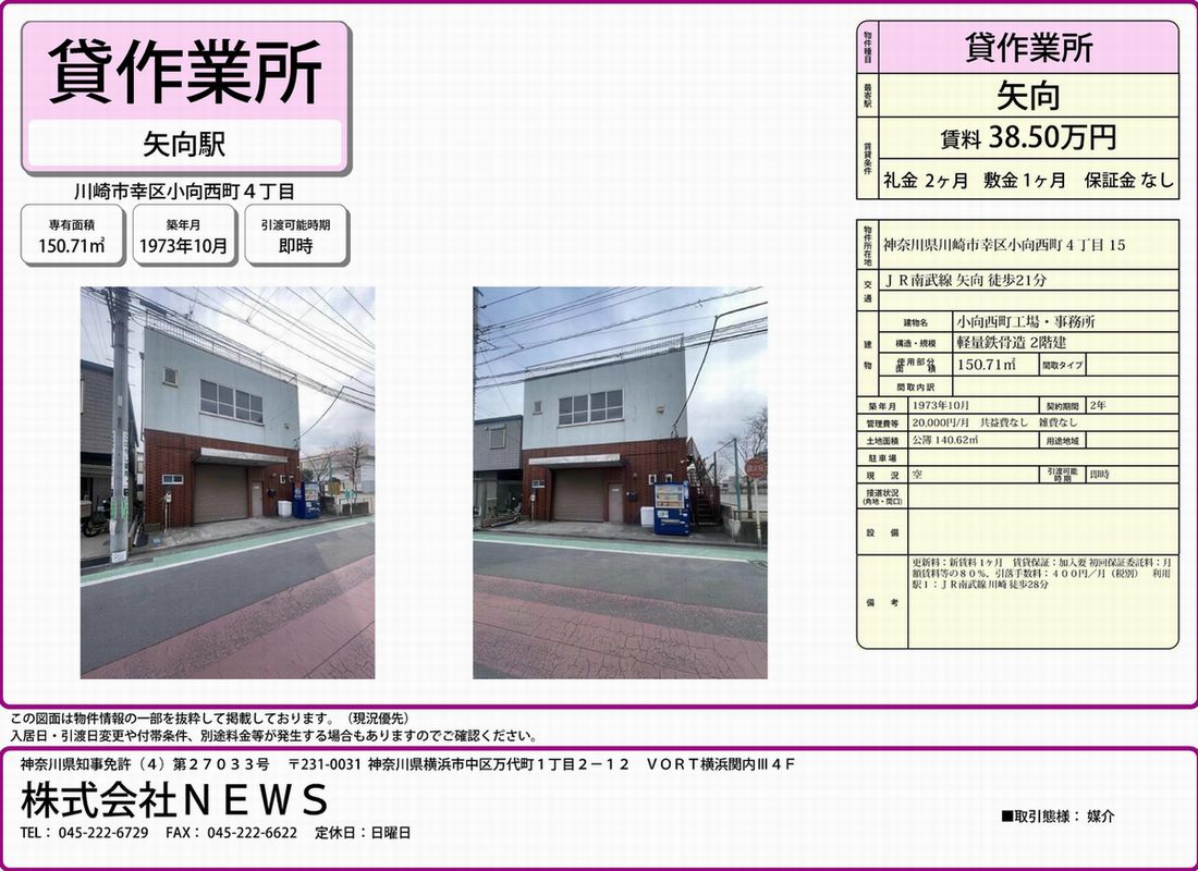 川崎市幸区小向西町4-15 矢向 貸倉庫 詳細データ