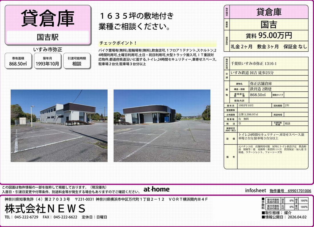 いすみ市弥正1316-1をはじめ東京・神奈川・千葉・埼玉・横浜・川崎の貸倉庫・貸工場・賃貸土地の情報を検索できます。いすみ市弥正1316-1の事務所付・ホイスト・クレーン付、キュービクル、工業地域の貸し倉庫・貸し工場もプロがお探しします。いすみ市弥正1316-1の貸倉庫・貸工場・賃貸土地は物件数No1の不動産iLANDにお任せ下さい。いすみ市弥正1316-1で貸倉庫・貸工場・賃貸土地を所有のオーナー様には貸し倉庫・貸し工場の広告を掲載致しますので是非、ご相談下さい。貸倉庫・貸工場・賃貸土地を貸したい方も、借りたい方も不動産iLAND! |