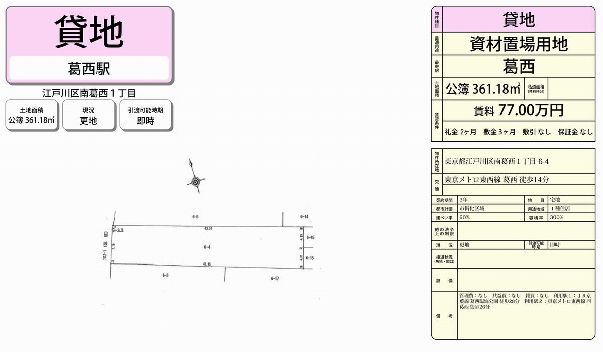 江戸川区南葛西1-6-4 葛西 貸地 詳細データ