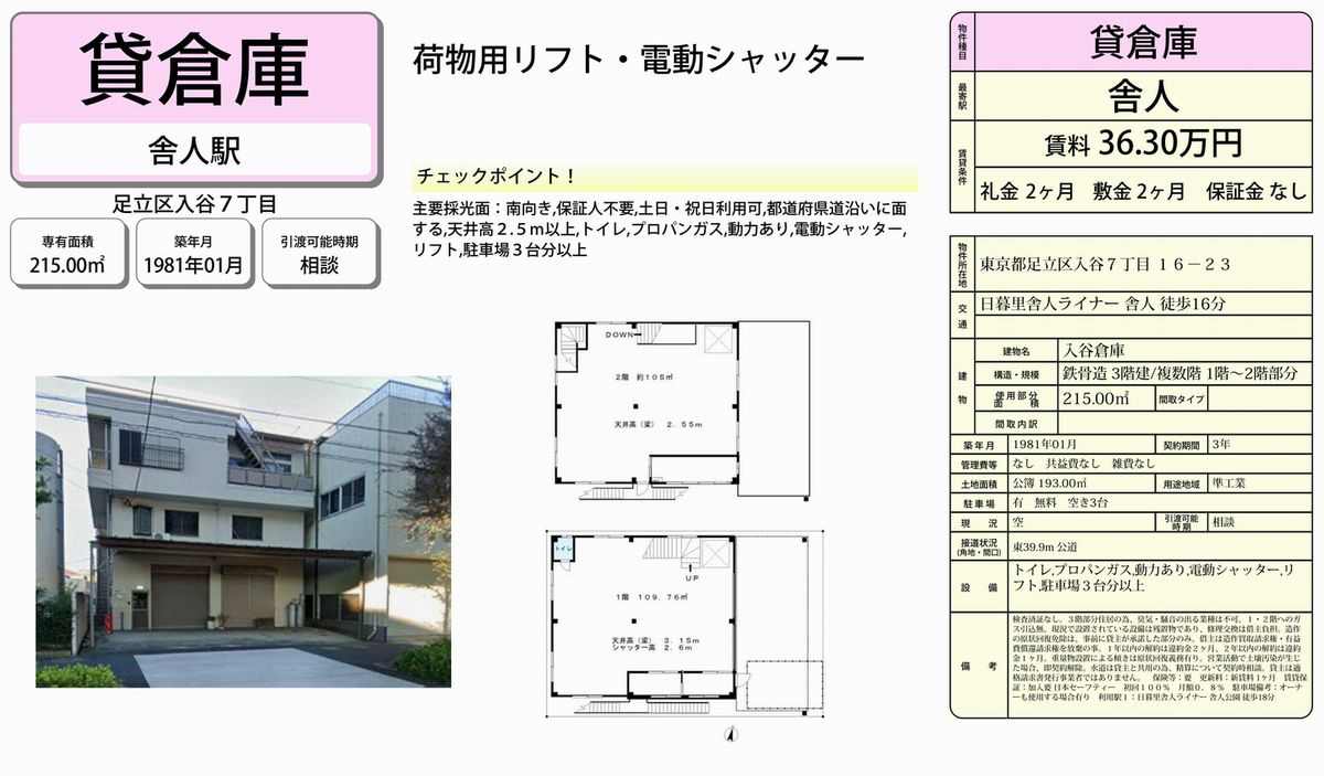 足立区入谷7-16-23 入谷倉庫 詳細データ