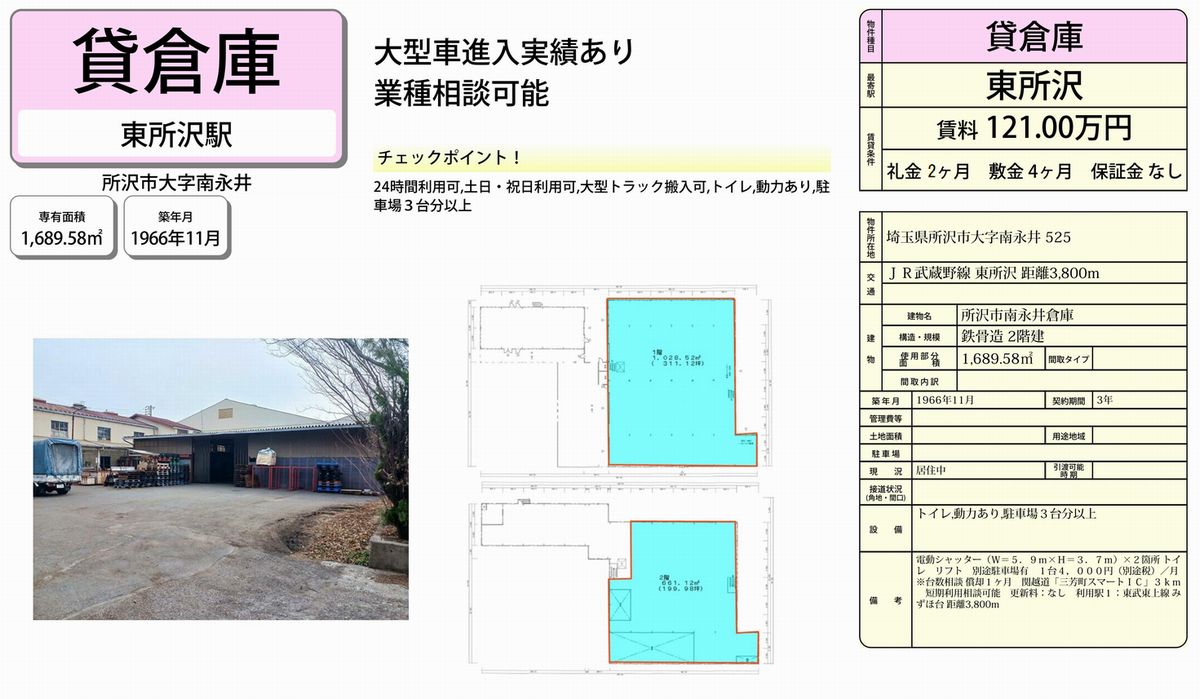 所沢市南永井525 東所沢 貸倉庫 詳細データ