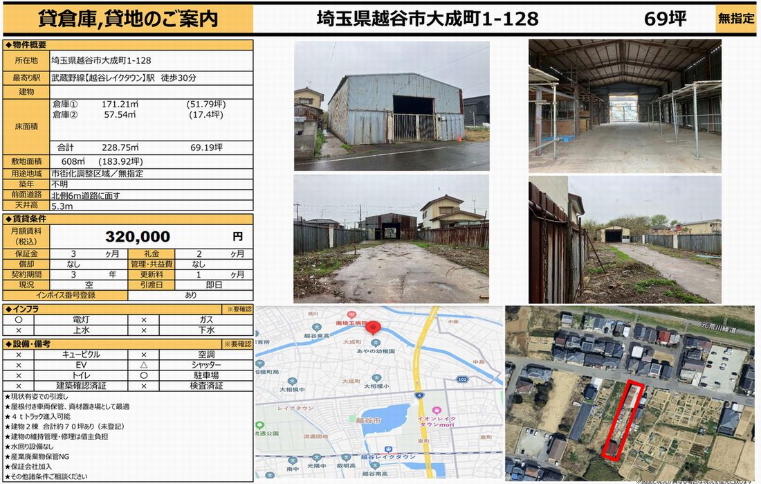 越谷市大成町1-128 越谷レイクタウン 貸倉庫 2棟一括貸 詳細データ